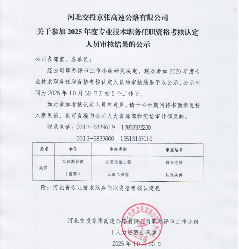 關(guān)于參加2025年度專業(yè)技術(shù)職務(wù)任職資格考核認(rèn)定人員審核結(jié)果的公示